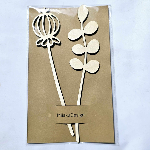 Nämä puiset kukat ovat tehty suomalaisesta koivuvanerista. Kukkien korkeus on noin 25 cm.