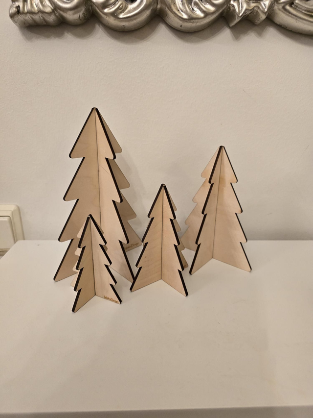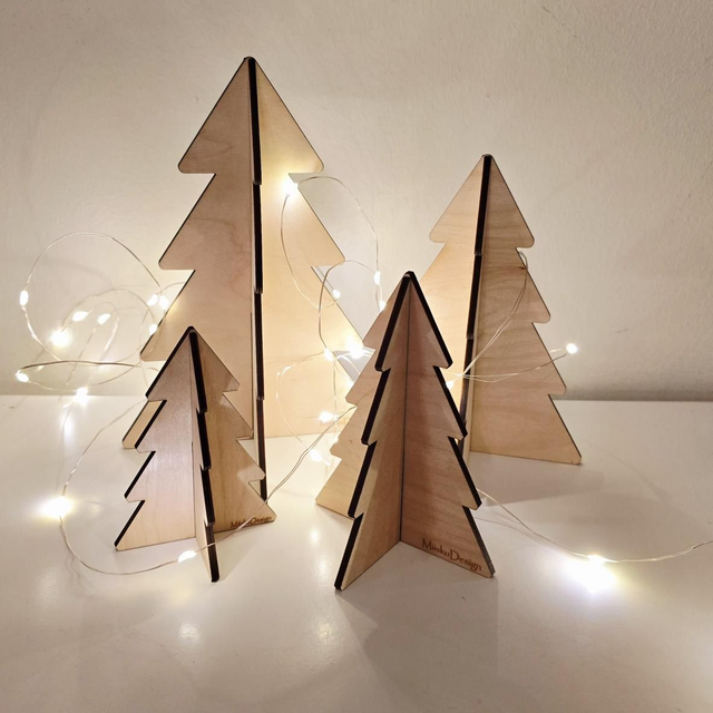 Nämä ihastuttavat kuuset ovat tehty suomalaisesta sertifioidusta koivuvanerista. Kuusi koostuu kahdesta osasta ja palat on helppo laittaa paikalleen.